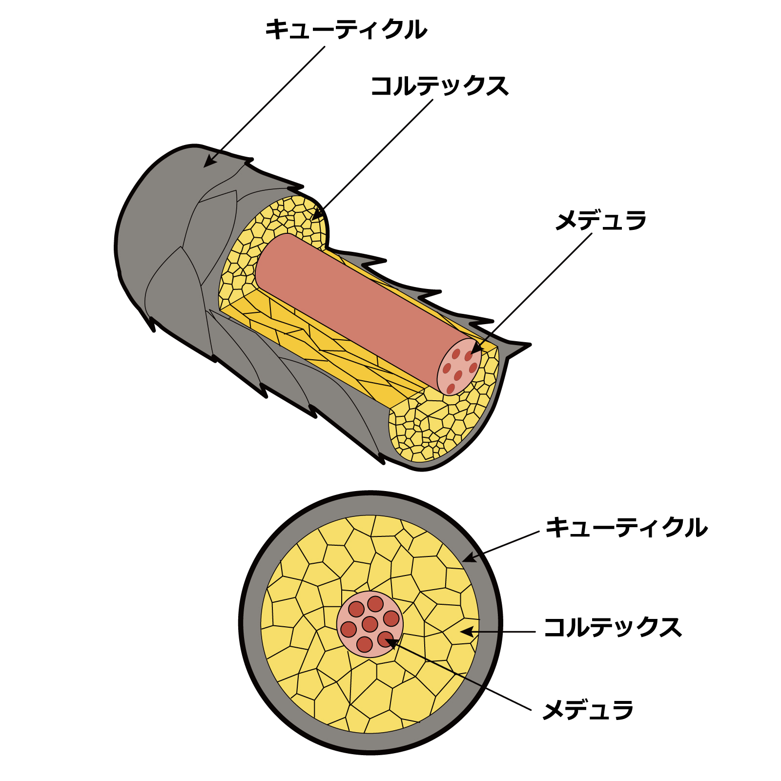 (メデュラはここでは割愛。メデュラが無い人や髪も存在し、”役割”もわかっておりません。。)