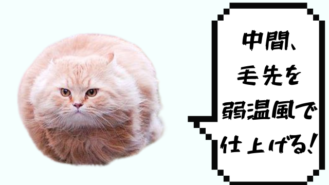 【STEP 3】 髪の中間、毛先を弱温風で仕上げる